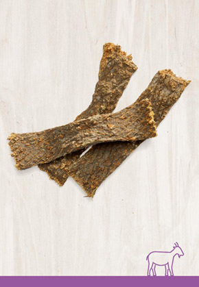 8-15cm lange und dünne Streifen aus reinem getrocknetem Fleisch von der Ziege können gut zernagt und bearbeitet werden. Die Kaustreifen bieten eine kurzweilige Beschäftigung für alle Hunde.